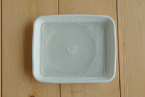 重ねてみました 裏はこげ茶色で無釉です。 CDケースと比べてみました。 CDケースと比べてみました。 アップです。艶がある質感です。