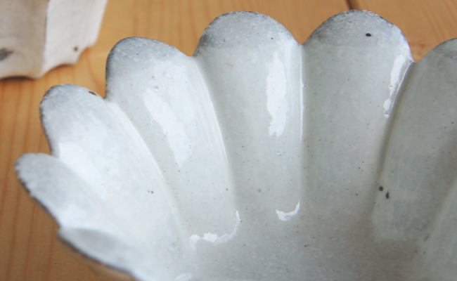 粉引マーガレットと粉引シンプルのお皿と鉢は、制作工程の違いから他の粉引の物と若干質感が異なります。 他の粉引のものと比べ、写真では判りにくいですが、白い化粧がモコモコした感じです。(表面の透明の釉薬は他と同様で艶がある感じです) ※他の粉引のものと比べた時、ジックリ見ると違いがお判りいただけると思いますが、遠めに見ると同じような感じです。 |