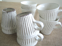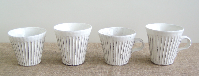 削ぎ目をポリポリほどこした、台形のカップたちです。