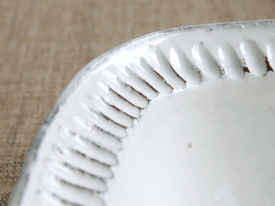 縁にポリポリ削ぎ目をほどこた鉢です。