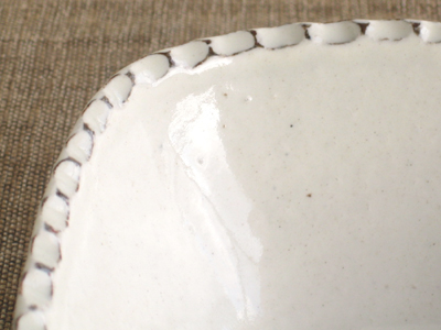 表面の釉薬は、艶のある質感で、よく見ると白地にほんのりグレーぽく出た部分があったりします。